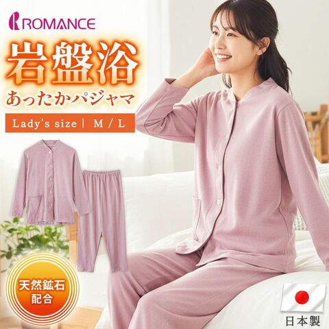 ロマンス岩盤浴 スムースニット パジャマ レディース 冬 長袖 長ズボン ナイティ 寝間着 部屋着 ルームウェア 天然鉱石 遠赤外線効果 冷え性対策 秋 冬 あったか 暖か プレゼント ギフト 婦人(ピンク Lサイズ)【A-7150-0114-5101PIL】