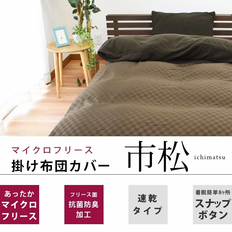 市松柄 あったか 掛け布団カバー ダブルロング 190×210cm マイクロフリース スナップボタン仕様 冬用(ダブルロング ベージュ)【7DA-T121900F-96BE】