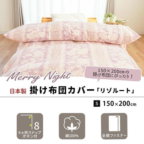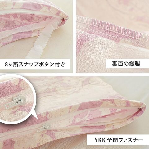 掛け布団カバー シングル 綿100% 日本製 150×200cm リゾルート YKK全開ファスナー 8ヶ所スナップボタン 両面プリント ロイヤル エレガント オーナメント柄 掛けふとんカバー 布団カバー シングルサイズ (リゾルート/ピンク)【7SA-223091-16PI】