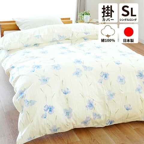 掛け布団カバー 綿100% シングル 150×210cm 日本製 花柄 フラワー 150×210 国産 コットン100 布団カバー かわいい シングル SL シングルロング【在庫限り】 (フラワー:ブルー)【7SA-2266BL】