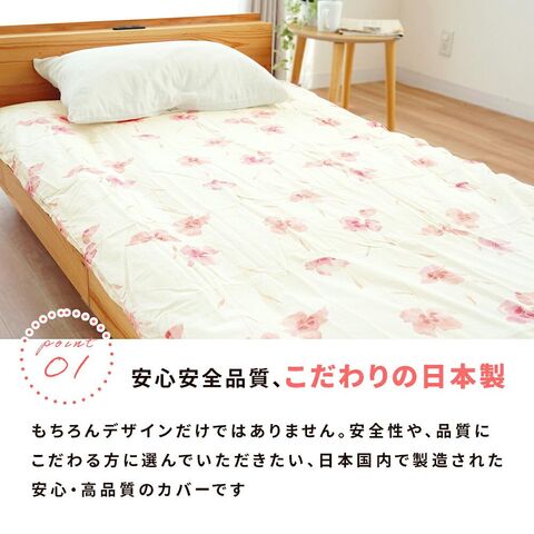 敷き布団カバー シングル 綿100% 日本製 ピンク シングルロング ファスナー シーツ 105×215 国産 コットン100 布団カバー (フラワー/ピンク)【7SB-2231PI】