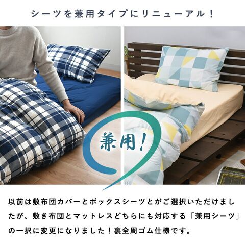 | サイズ | 掛カバー:約150×210cm 兼用シーツ:約100×205×30cm(厚み25cmまで) 枕カバー:43×63cm用 |