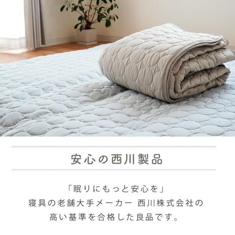 西川 平織り 敷きパッド 綿100% 280×205cm ファミリーサイズ 綿ブロード 夏用 キルティング 吸水 (グレーベージュ)【9F-BM95070775GB】
