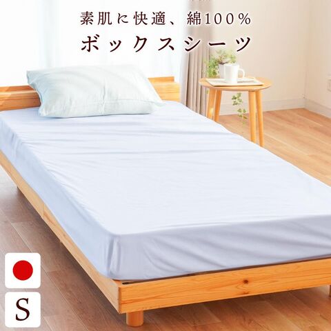 ボックスシーツ 綿100% シングル 日本製 100×200×35cm 無地 (ブルー)【9S-903100BL】