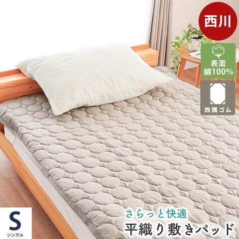 西川 平織り 敷きパッド 綿100% シングル 100×205cm 綿ブロード 夏用 キルティング 吸水 (グレーベージュ)【9S-BM05020770GB】