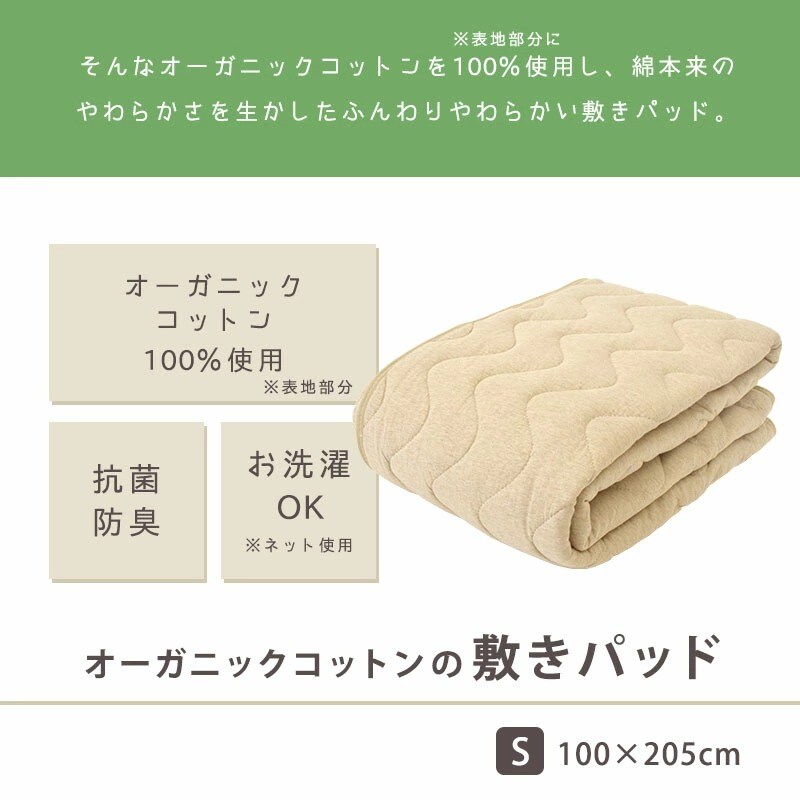 敷きパッド シングル オーガニックコットン 綿100% ニット/パイル 抗菌 防臭 汗取り敷パッド 洗えるパットシーツ(シングル ベージュ/ニット地)【9S-O2-061BE】のレビュー