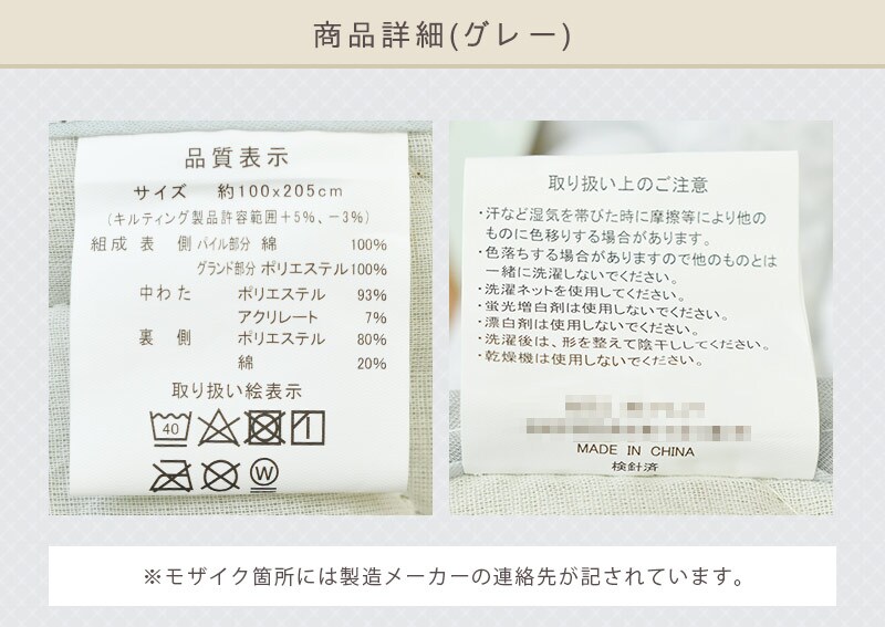 (キルティング製品許容範囲+5%、-3%)