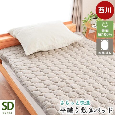 西川 平織り 敷きパッド 綿100% セミダブル 120×205cm 綿ブロード 夏用 キルティング 吸水 (グレーベージュ)【9SD-BM15030771GB】