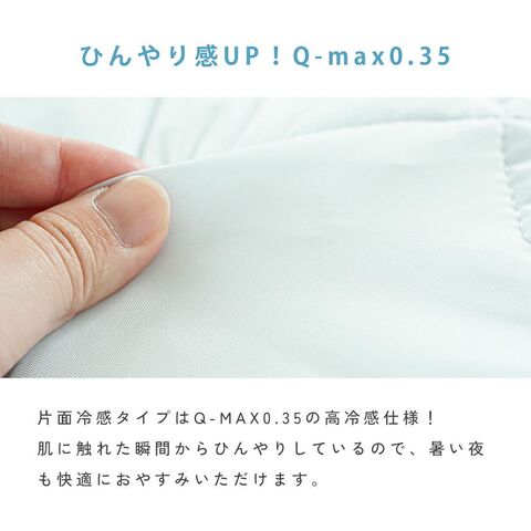 | 仕様 | 【共通】 四隅ゴム付き 【リバーシブルタイプ】 片面冷感、片面パイル生地 【片面冷感タイプ】 片面冷感生地 |
