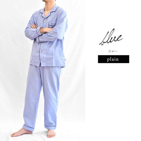 パジャマ メンズ 父の日 ギフト 今治タオル 日本製 綿100% ガーゼ&パイル 長袖 長ズボン 紳士パジャマ(無地ブルー 180A(L))【A-Z180L14FBL】