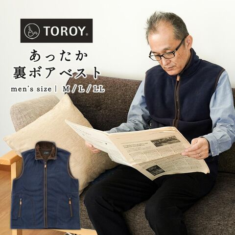 TOROY トロイ 冬用 ベスト メンズ MEN 紳士 あったか 裏ボア フリース コーデュロイ調 起毛 秋 冬 部屋着 ルームウェア 上着 アウター 袖なし 襟付き 前開きファスナー ポケット ブランド ワンポイント 刺繍 ギフト (ネイビー LLサイズ)【AL-26561RHNVLL】のレビュー