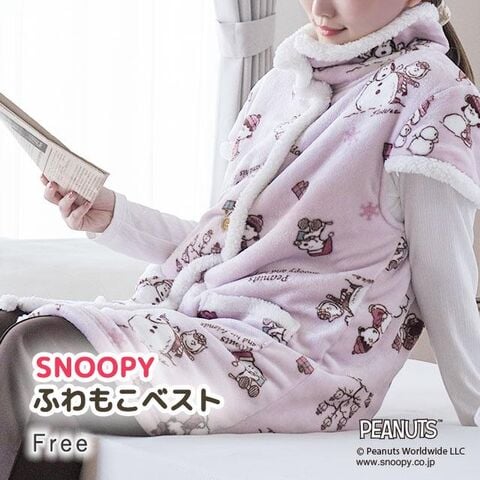 スヌーピー あったか ベスト レディース 袖付き 婦人 フランネル ボア チョッキ 冬 防寒 羽織 部屋着 ルームウェア SNOOPY PEANUT キャラクター 柄 プレゼント ギフト クリスマス ピンク グレー 節電 (ピンク)【AML-480064PI】