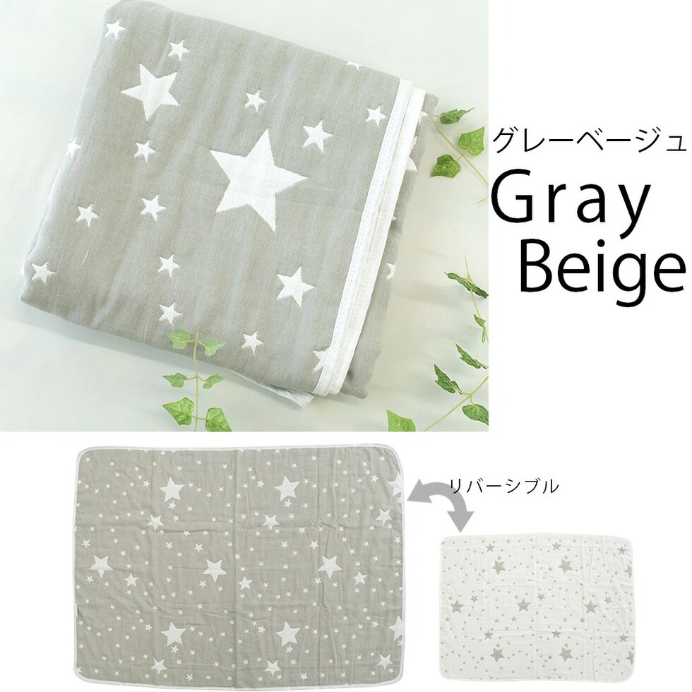ガーゼケット 85×115cm スター柄 綿100% 6重ガーゼ リバーシブル お昼寝ケット ガーゼのタオルケット(約85×115cm 星柄:グレーベージュ)【BC-149-6KETBGB】