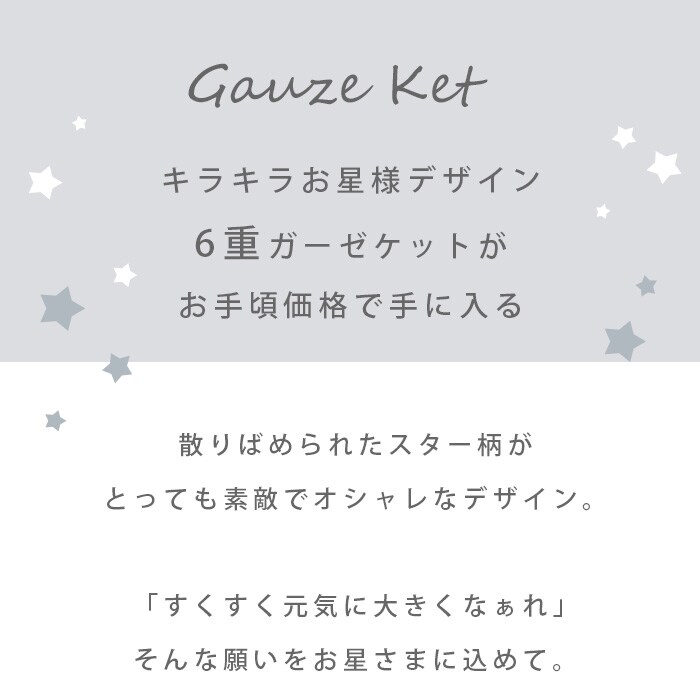 keyword | ガーゼケット 6重ガーゼケット ケット ブランケット ガーゼ 6重ガーゼ ベビー 赤ちゃん 出産祝い プレゼント スター 星 男の子 女の子 ユニセックス 綿100% コットン |