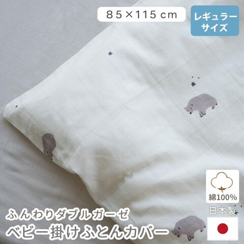 ベビー 掛け布団カバー 85×115cm レギュラーサイズ 綿100% 日本製 ファスナー ガーゼ ダブルガーゼ 2重ガーゼ 無添加 掛布団カバー 掛カバー 布団カバー ベビー用品 赤ちゃん ふとん サンデシカ (スリーピーベア)【BC-2109-50】