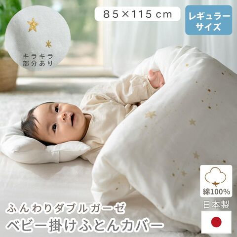 ベビー 掛け布団カバー 85×115cm レギュラーサイズ 綿100% 日本製 ファスナー ガーゼ ダブルガーゼ 2重ガーゼ 無添加 掛布団カバー 掛カバー 布団カバー ベビー用品 赤ちゃん ふとん サンデシカ(スターレットゴールド)【BC-2109-54】