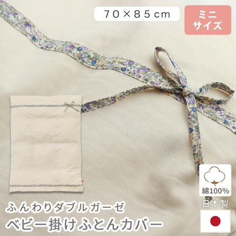 ベビー 掛け布団カバー ミニ 70×85cm ミニサイズ 綿100% 日本製 ファスナー ガーゼ ダブルガーゼ 2重ガーゼ 無添加 掛布団カバー 掛カバー 布団カバー コンパクト 赤ちゃん ふとん サンデシカ (リボン/ラベンダー)【BC-2133-50】