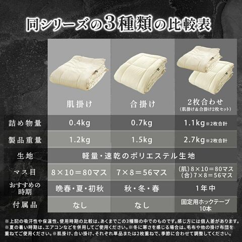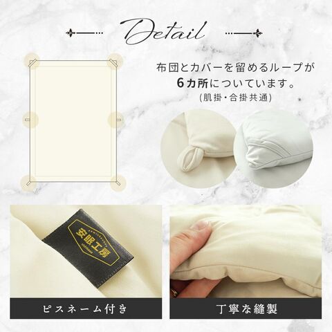 | 製品重量 | 肌掛け布団:約 1.2 kg(製品タグを含む) |
