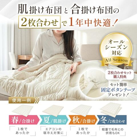 西川 掛け布団 シングル ロング 洗える もちふわ マイクロ天竺 2枚合わせ 合掛け布団 肌掛け布団 150×210 ふとん オールシーズン 春 夏 秋 冬 合繊 キルト 当社限定 (肌掛け+合掛けセット ベージュ)【BE050SET-BE】