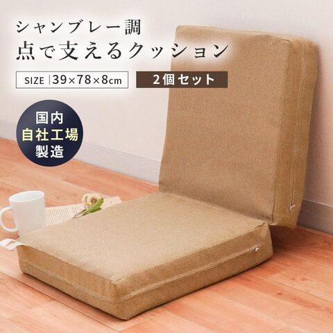 【2個セット】 クッション 長方形 日本製 自社製造 シャンブレー調 撥水加工 無地 シートクッション ソファーマット 座椅子 (ベージュ×2個)【CI-149-TKCU-02BE-2】