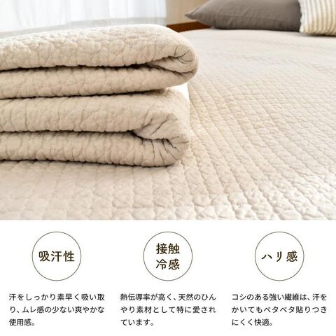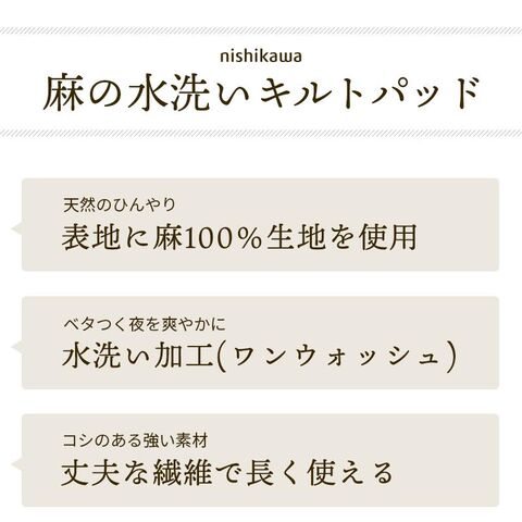 西川 夏 敷きパッド ダブル 麻 夏用 麻100% リネン 冷感 水洗いキルト 麻100% 綿わた入り 水洗い ウォッシャブル パットシーツ(ダブル)【9D-CM20071245GB】