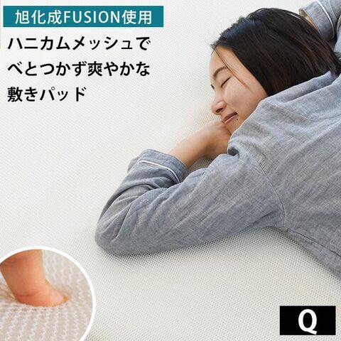 敷きパッド クイーン 旭化成 フュージョン 使用 通気性 体圧分散 ハニカム ベッドパッド パットシーツ スリープメディカル パッド メッシュ 夏 洗える (クイーン)【1QB-23FUSIONPAT-QWH】