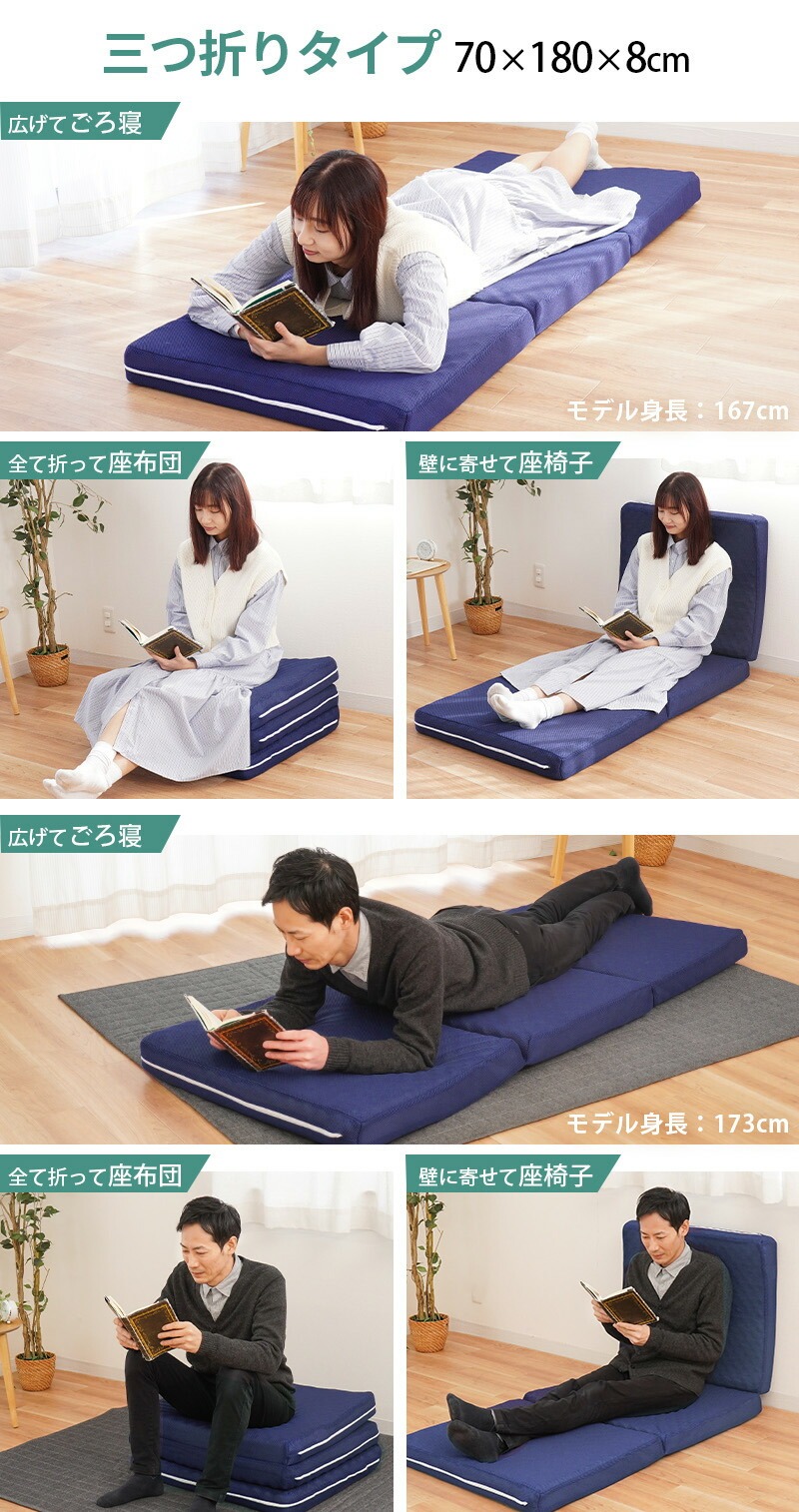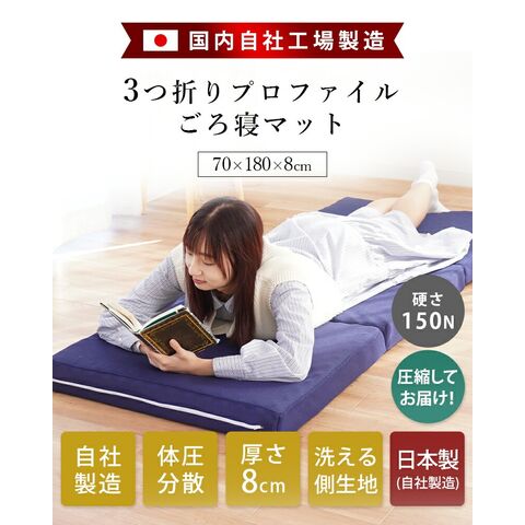 ごろ寝マット 三つ折り 国産ウレタン 使用 150N コンパクト 高反発 折りたたみ マットレス 日本製 自社製造【当社限定】国産 車中泊(三つ折り(70×180) ごろ寝マット単品)【H-TQ-ME01NV】