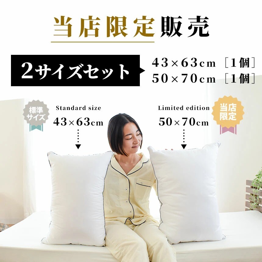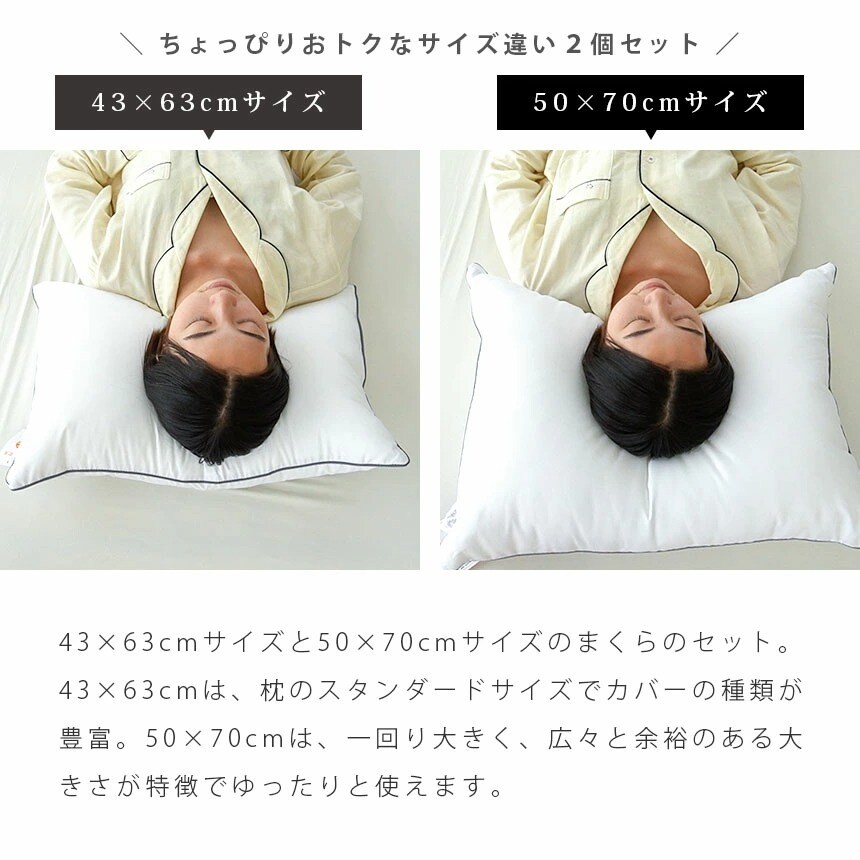 スタンダードな43×63cm枕と、当店限定販売・ゆったり大きめ50×70cmの2個セット★