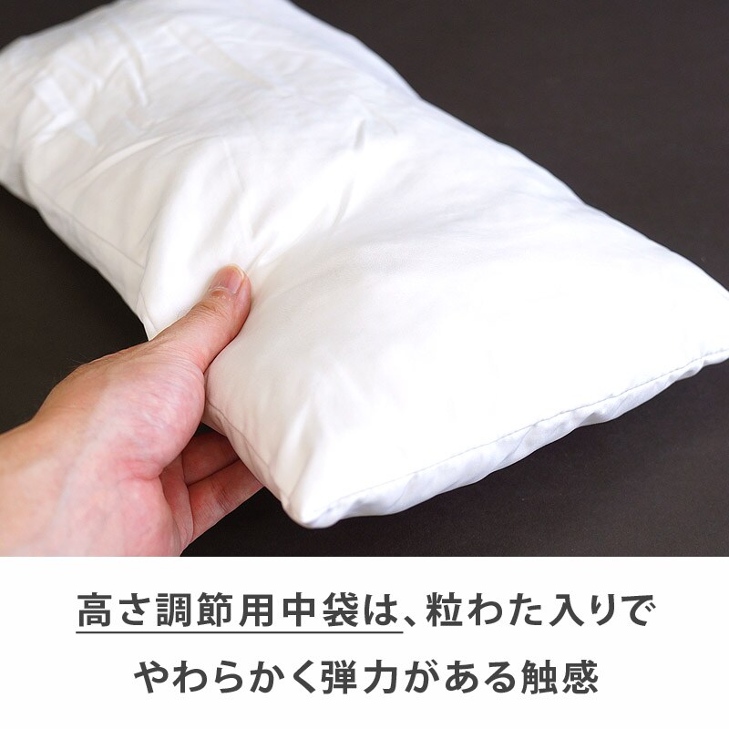 高さ調節用の中袋入り!中袋には粒わた入りでやわらかく弾力がある感触。