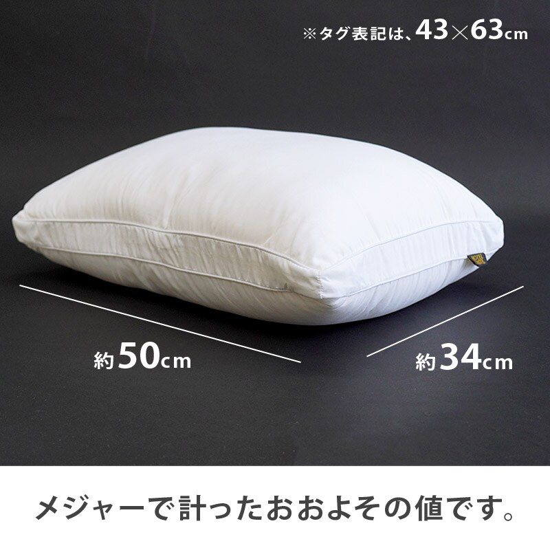 | サイズ | 約63×43cm ※タグ表記サイズ 約50×34cm ※実寸サイズ 枕カバーは43×63cmサイズのものをお使い下さい。 |