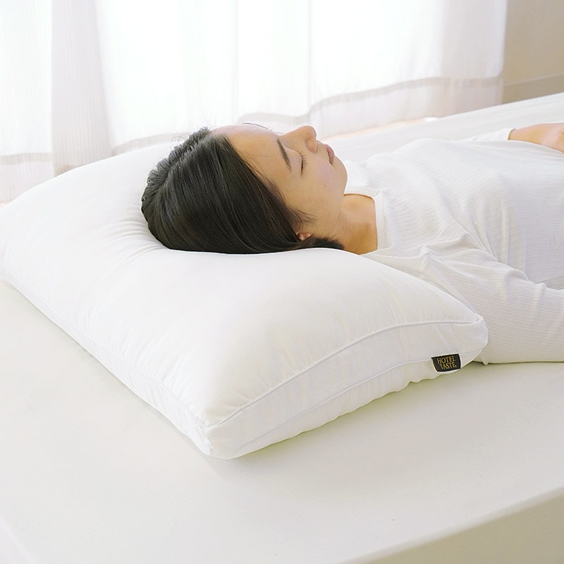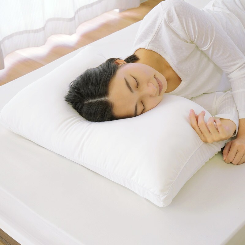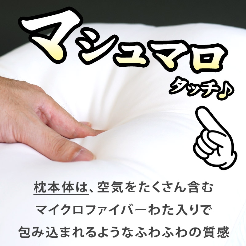 まくら本体は、空気をたくさん含むマイクロファイバーわた入りで包み込まれるようなふわふわの質感。