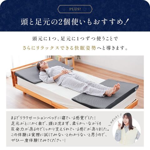 | ・健康は、眠りから。 当社のオリジナルブランド Sleep Medicalは、健康で素敵な毎日を眠りで サポートすることを目指します。 あなたの明日が、元気で、健やかで ありますように。 ・傾斜で上半身を優しく浮かせてリラックスリクライニングベッドの上半身が持ち上がった状態を手軽に再現したいという発想から生まれました。ゆるやかな傾斜が自然と上半身を高く保ち、リラックスして快眠できる体勢へと導きます。 ・快適な睡眠をサポート約6度のゆるやかな傾斜がついた枕。就寝中に上半身を少し高くすることで、快適な睡眠をサポートしながら吐き戻し軽減にも役立ちます。 ・横幅100cmでシングル敷き布団をカバー快適な寝姿勢を目指し、幅100cmのワイドサイズに設計しました。広々としたサイズなので、どこに転がってもしっかりカバーし、まくらからズレたりする心配がなく、朝までぐっすり眠れます。 ・ニット生地の柔らかな寝心地表面は中綿入りのニット生地のため、柔らかな触り心地。裏面、側面には通気性の良いメッシュ生地を使用しています。 ・お手入れ簡単・洗える側生地L字に開けるファスナーで、着脱の手間を軽減。取り出ししやすくなっています。 ・国内自社工場で製造自社工場で製造しています。国内の工場で作られているため安心して、お使いいただけます。 | |