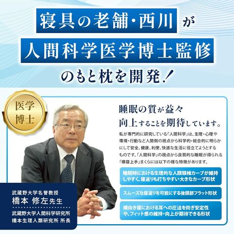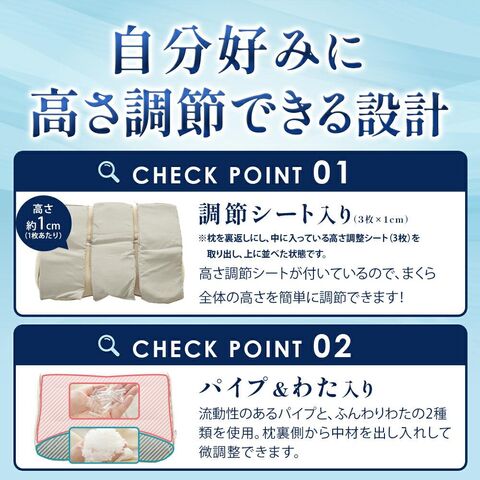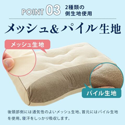 あの西川の肩楽寝の枕のような高さ調節が可能! ・耳に負担をかけにくい 耳にやさしいイヤーポケット仕様。流動的でやわらかなパイプと、伸縮性のある生地が耳にやさしくフィット。横向き寝の耳への圧迫感を軽減します。 ・横向き寝が安定一般的なわた枕は、中央部にボリュームがあり、端にいくほど低くなっているため横向き寝が安定しづらい形状でした。横寝上手枕は、サイドにマチを作ることでまくらの端まで同じ高さをキープ。横向き寝が安定します。 ・寝返りがしやすいロングアーチ形状で、仰向け寝も横向き寝も首・肩にまくらがフィット!寝返りもしやすく、横向き寝だけでなく仰向け寝でも充分お使いいただけます。 ----------------------------------------- |