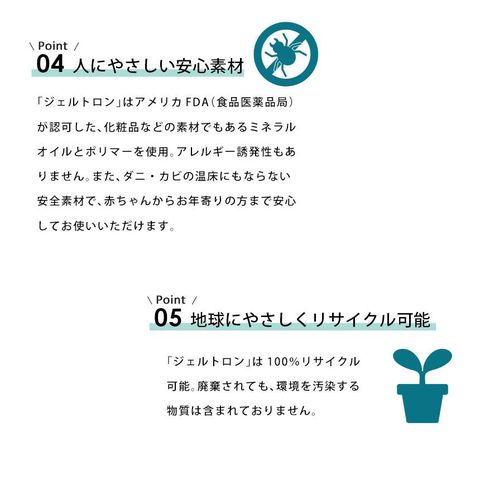 | その他注意 | ■洗濯の際は、タグなどに表記されている内容を必ず確認してから行ってください。 ■洗濯機をご使用される場合は、必ず洗濯機の取扱説明書に従ってください。 ■できるだけ実物と同じ色合いになるよう徹底していますが、ご使用の端末やブラウザなどにより実物と色合いが異なって見える場合がございます。 ■重さの表記をしておりますが、およその値です。わずかですが個体差があることをご考慮下さいませ。 ■商品のサイズ・重量は約表記です。サイズ・重量を保証するものではございませんのでご了承ください。 ■当店はジェルトロン製品の正規販売店です。 ■2023年6月より、仕様を変更して販売しております。 |
