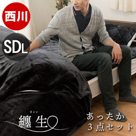 暖かい 寝具3点セット 冬用 掛け布団カバー セミダブル 175×210cm 敷きパッド 120×205cm 枕パッド 50×60cm 纏生(セミダブル 無地/ブラック)【7SDG-MATOI-BK】