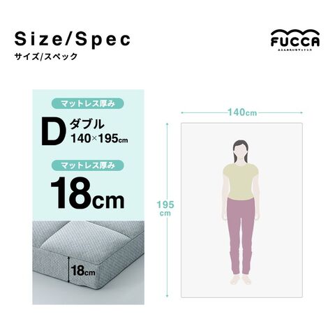 高反発 マットレス ダブル 厚さ18cm 高反発ウレタン fucca 洗える側生地 ふとんマットレス マット mattress 140×195 (約140×195×18cm)【MD-N2407M18D-TKGY】