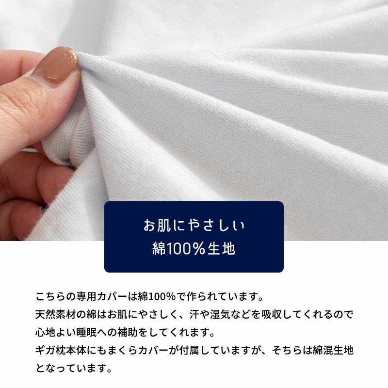 ギガ枕本体に付属している枕カバーは綿混素材のため、綿100%のカバーをお探しの方にもおすすめ。