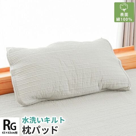 枕パッド 綿100% オールシーズン 43×63cm レギュラー 水洗いキルト 吸水 速乾 洗える 春夏用 (グレー)【MP-TMP154300-05GY】