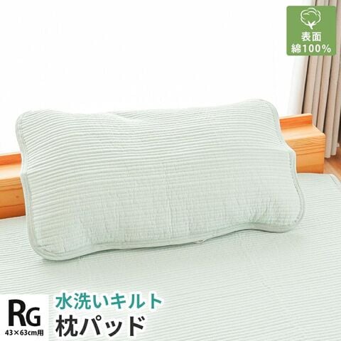 枕パッド 綿100% オールシーズン 43×63cm レギュラー 水洗いキルト 吸水 速乾 洗える 春夏用 (グリーン)【MP-TMP154300-53GN】