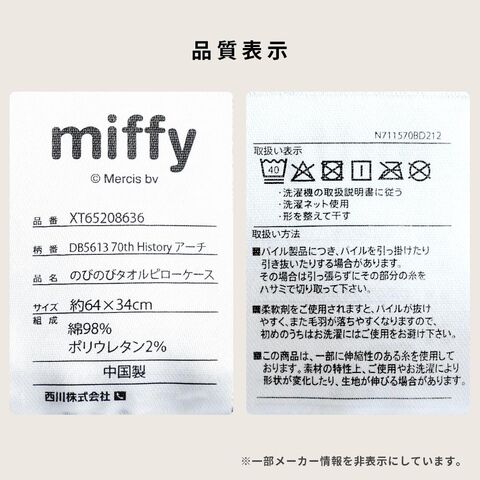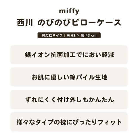 西川 のびのびピローケース 34×64cm 綿 ワイドサイズ ミッフィー miffy ピロケース 枕カバー まくらカバー (シルエット)【MP-XT65208646PI】