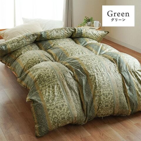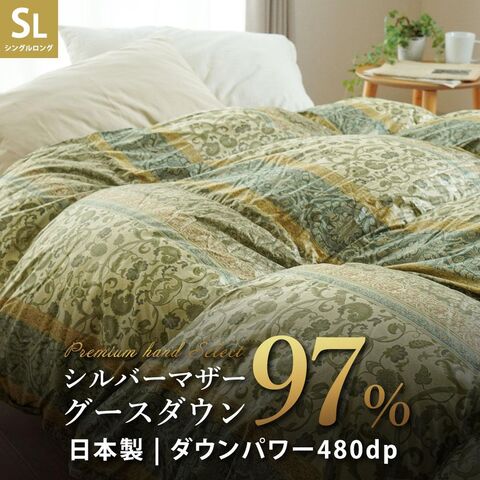 羽毛布団 シングル マザーグース ダウン97% 1.0kg 日本製 掛け布団 シルバー グースダウン 480dp 【後払い不可】(グリーン)【3SA-PMATUYAMAGN】