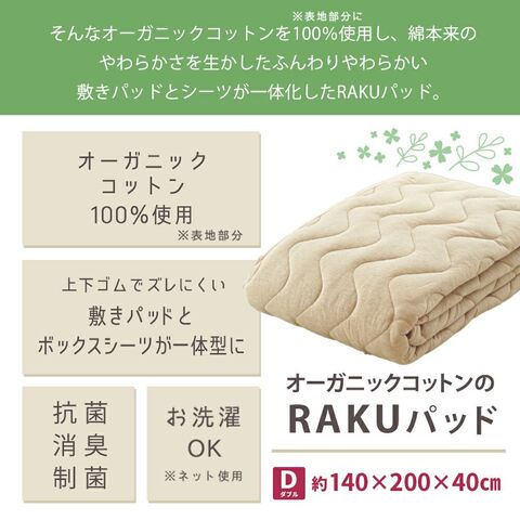 RAKUパッド ダブル 天竺ニット オーガニックコットン スマートパッド 敷きパッド と ボックスシーツ が一体型シーツ 敷パッド BOXシーツ スマートパッド ズレにくい 140×200cm (ダブル)【9D-RPO-224DBE】