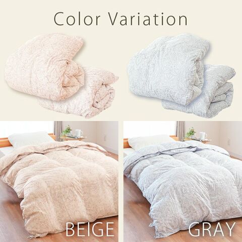 | 仕様 | ホワイトダックダウン ループ8ヶ所 スナップボタン8ヶ所付き 5×6マスタタキキルト(肌掛け布団) 5×6マス立体キルト(合い掛け布団) ダウンプルーフ加工 |