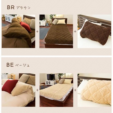 掛けカバー →10ヵ所スナップボタン / 全開ファスナー 敷きパッド、枕パッド →ゴムバンド付 / 遠赤外線わた入り |