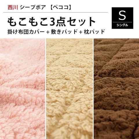 西川 あったか 3点セットシープボア pecoco ペココ もこもこ 毛布にもなる (シングル ベージュ)【SHEEPBORE-3SETBE】