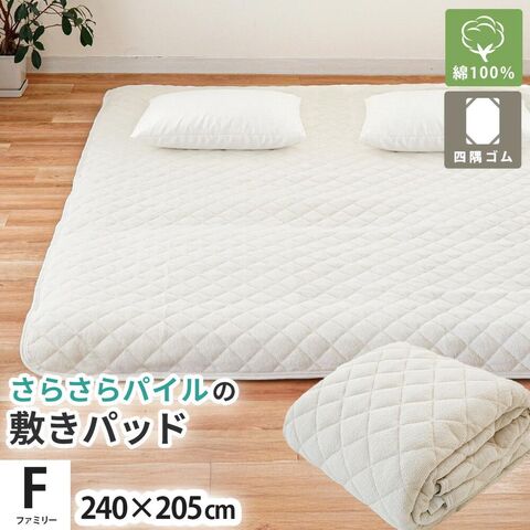 さらさら 敷きパッド 綿100% ファミリー3(240×205cm) タオル地 夏用 シンカーパイル パイル (ファミリー/240×205cm アイボリー)【9F-TSP152401-07IV】