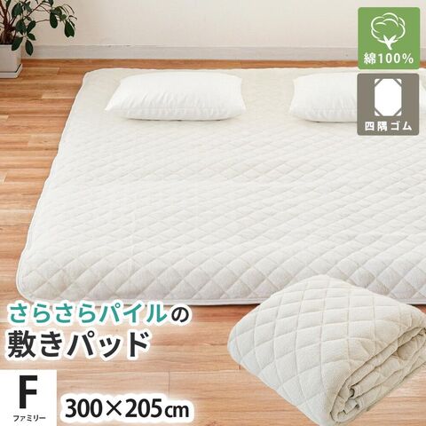 さらさら 敷きパッド 綿100% ファミリー5(300×205cm) タオル地 夏用 シンカーパイル パイル (ファミリー/300×205cm アイボリー)【9F-TSP153001-07IV】