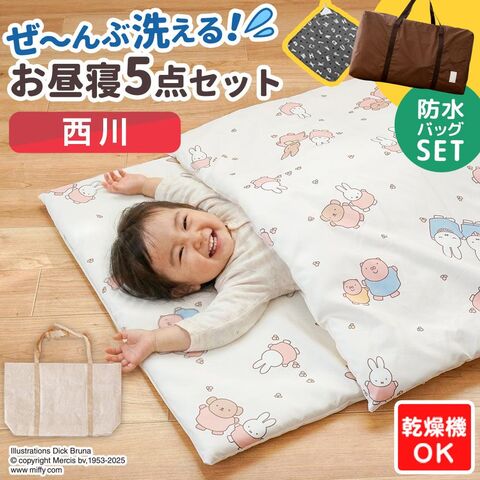 【専用防水バッグセット】【2026年最新】おまけ付 乾燥機が使える お昼寝布団セット 西川 洗濯機で洗える 保育園 幼稚園 ネームタグ バッグ ファスナー (ミッフィー お昼寝布団+防水バッグ)【BB-WF55706074IVT-B】