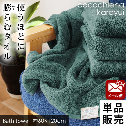 【1枚単品】【メール便:圧縮梱包】 タオル バスタオル 綿100% スイッチパイル 高吸水 中空糸使用 中厚 ココチエナ カラユイ (約60×120cm ダークグリーン)【YML-10A-CE-20020DGR】