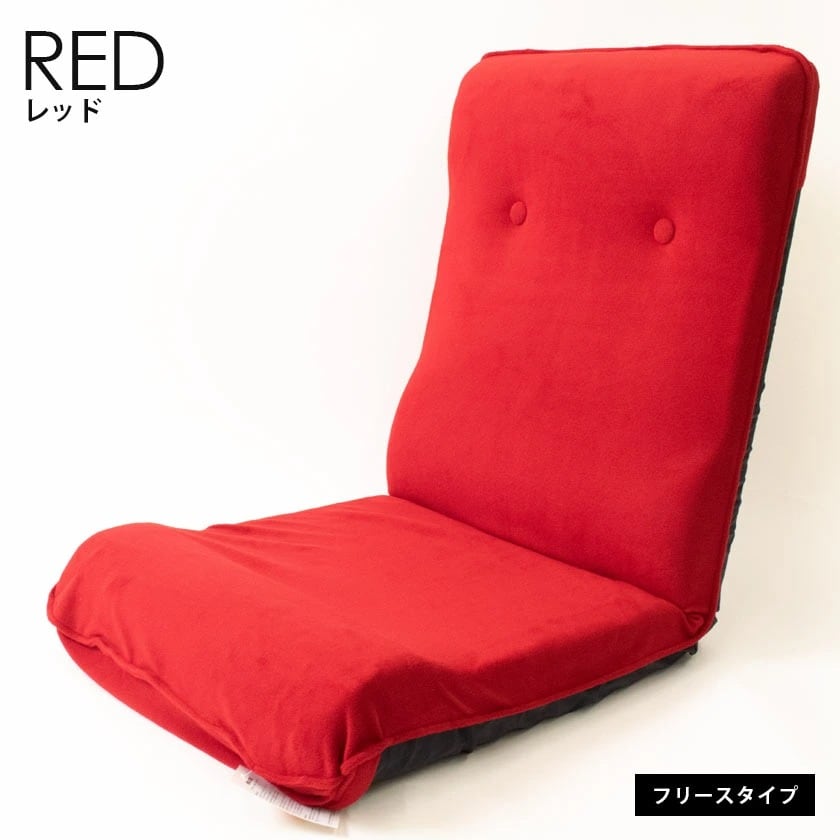 座椅子 日本製 5段階リクライニング フリース素材 中型便 (フリース/レッド)【Z-7961RE】